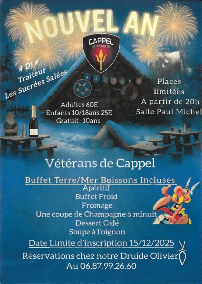 SOIRÉE DE NOUVEL AN ORGANISÉE PAR LE CLUB DE FOOT VÉTÉRANS DE CAPPEL