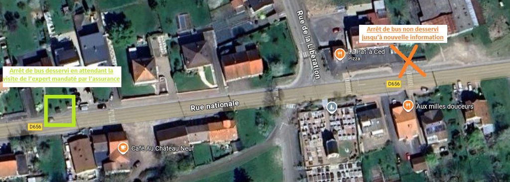 Il a été décidé, avec FLUO Grand Est, de déplacer temporairement l'arrêt dans l'abri situé à 200m, devant le 359 rue Nationale.