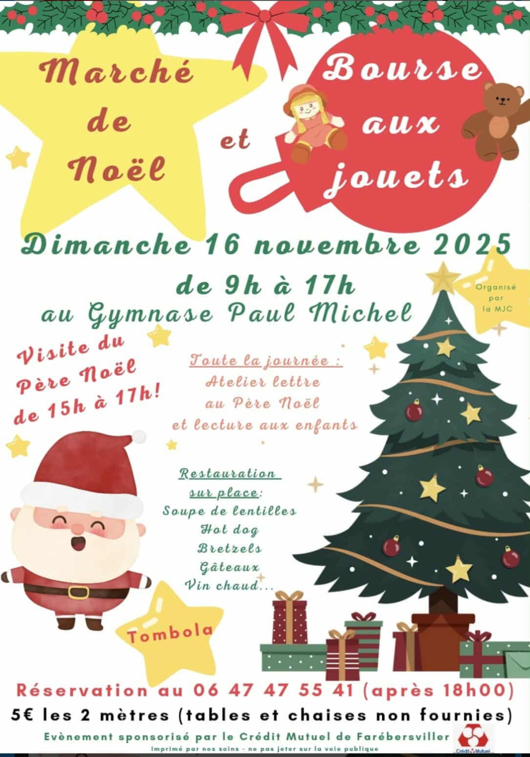 Marché de Noël et bourse aux jouets. Restauration sur place